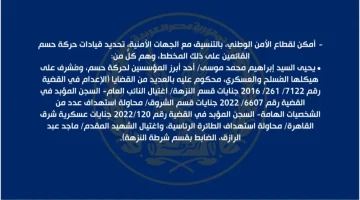 كشف قيادات حركة “حسم” المسؤولة عن المخطط الإرهابي